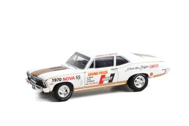Don’t miss out on this exceptional muscle car from Greenlight! This 1970 Chevrolet Nova SS is a 1/64 scale model replica. It comes in white and features 54th international 500 mile sweepstakes hurst performance ‘grand prize’ car, real rubber tires, detailed exterior, metal body and chassis, comes in a blister pack. It’s a brilliant automobile for any muscle car collection, and ideal for enthusiastic Chevrolet buffs!