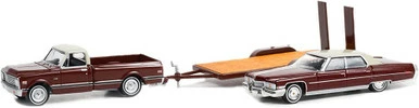 1972 Chevy C-10 & 1973 Sedan DeVille & Flatbed Trailer, Rocky – Greenlight – 1/64 scale Diecast Car