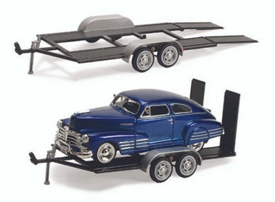 This handy MotorMax Trailer is the perfect way to transport or display your 1/24 scale diecast cars in style! Made by Motor Max and fashioned so that the back ramp folds up behind your vehicle, this car carrier will add a bit of extra panache to any collection.